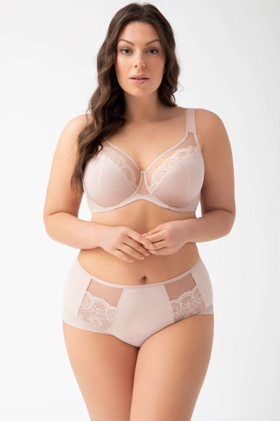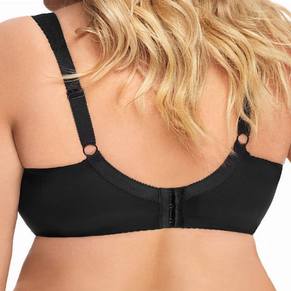 Tył z kryjącej lycry gwarantuje dobre dopasowanie i solidne podtrzymanie, a miękkie lamówki wykończające pas obwodu dodatkowo zwiększają wygodę. Model posiada regulowane, nieodpinane ramiączka w dwóch szerokościach oraz zapięcie na dwu- lub trzyrzędową haftkę z trzystopniową regulacją.