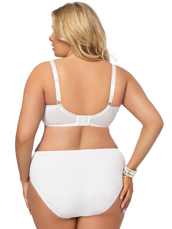 Biustonosz Victoria Biały K378 to klasyczny, miękki model z serii BIG, stworzony z myślą o kobietach ceniących komfort i solidne podtrzymanie. Wykonany z gładkich materiałów połączonych z eleganckim haftem, prezentuje się subtelnie i kobieco.