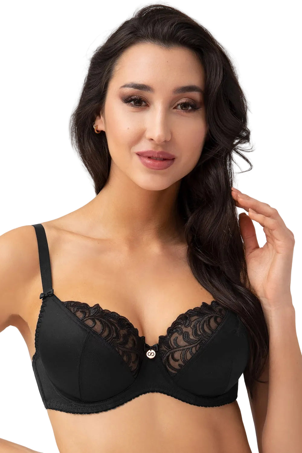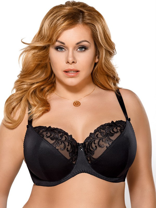Biustonosz Victoria Czarny K378 to klasyczny, miękki model z serii BIG, łączący komfort noszenia z eleganckim wyglądem. Połączenie gładkich materiałów z subtelnym haftem nadaje mu ponadczasowy, kobiecy charakter.