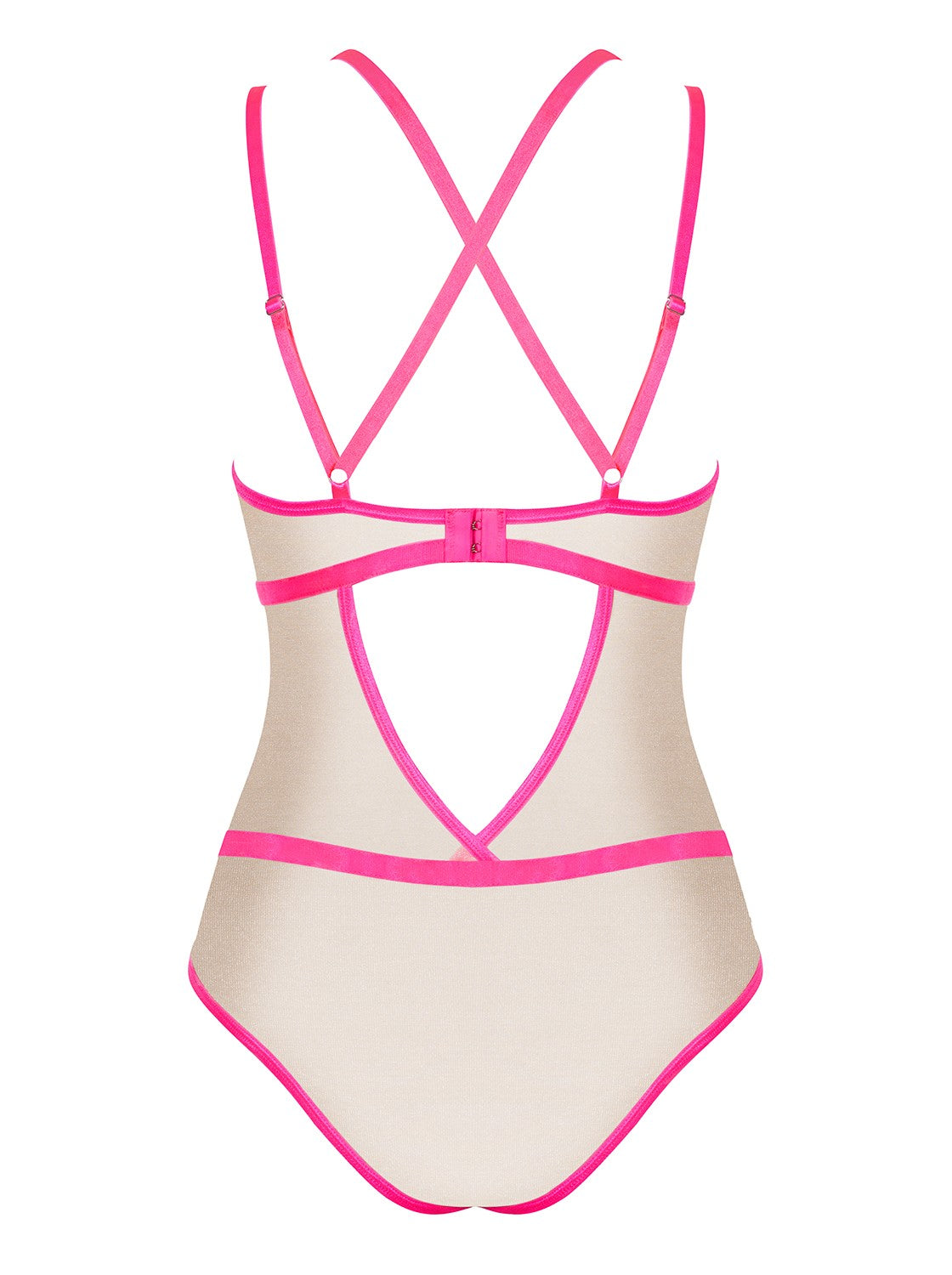 Body Nudelia to propozycja dla kobiet ceniących odważną zmysłowość i nowoczesny styl. Wykonane z prześwitującego materiału, subtelnie podkreśla sylwetkę, a neonowo-różowe paski nadają mu wyrazisty charakter.