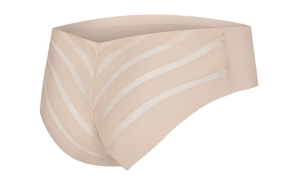 Model łączy ozdobną siateczkę z głębszym wycięciem na pośladkach, pięknie je eksponując. Wykonane w bezszwowej technologii Julimex Invisible Line®, zapewniają komfort noszenia, a bawełniana wkładka w kroku dba o higienę.