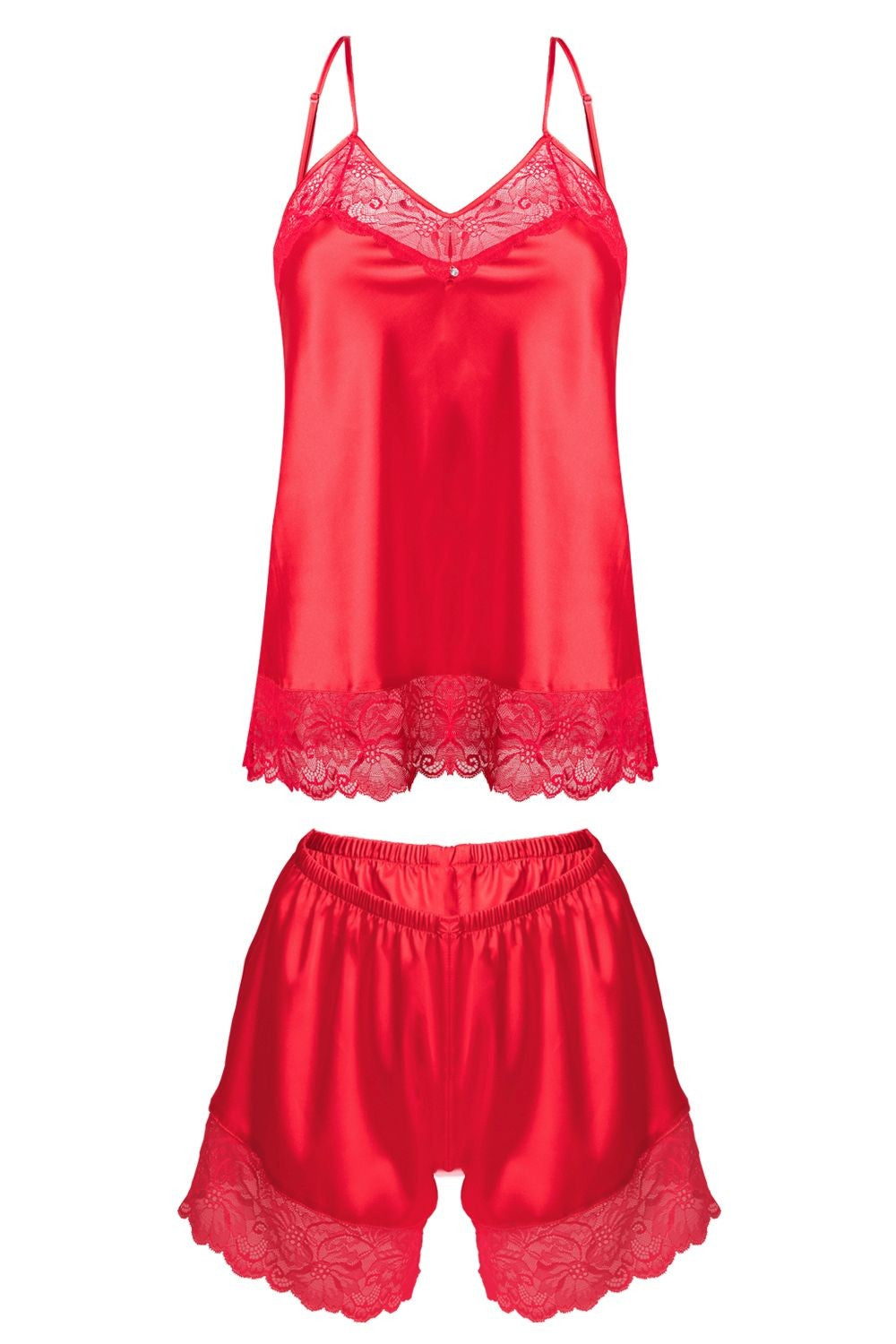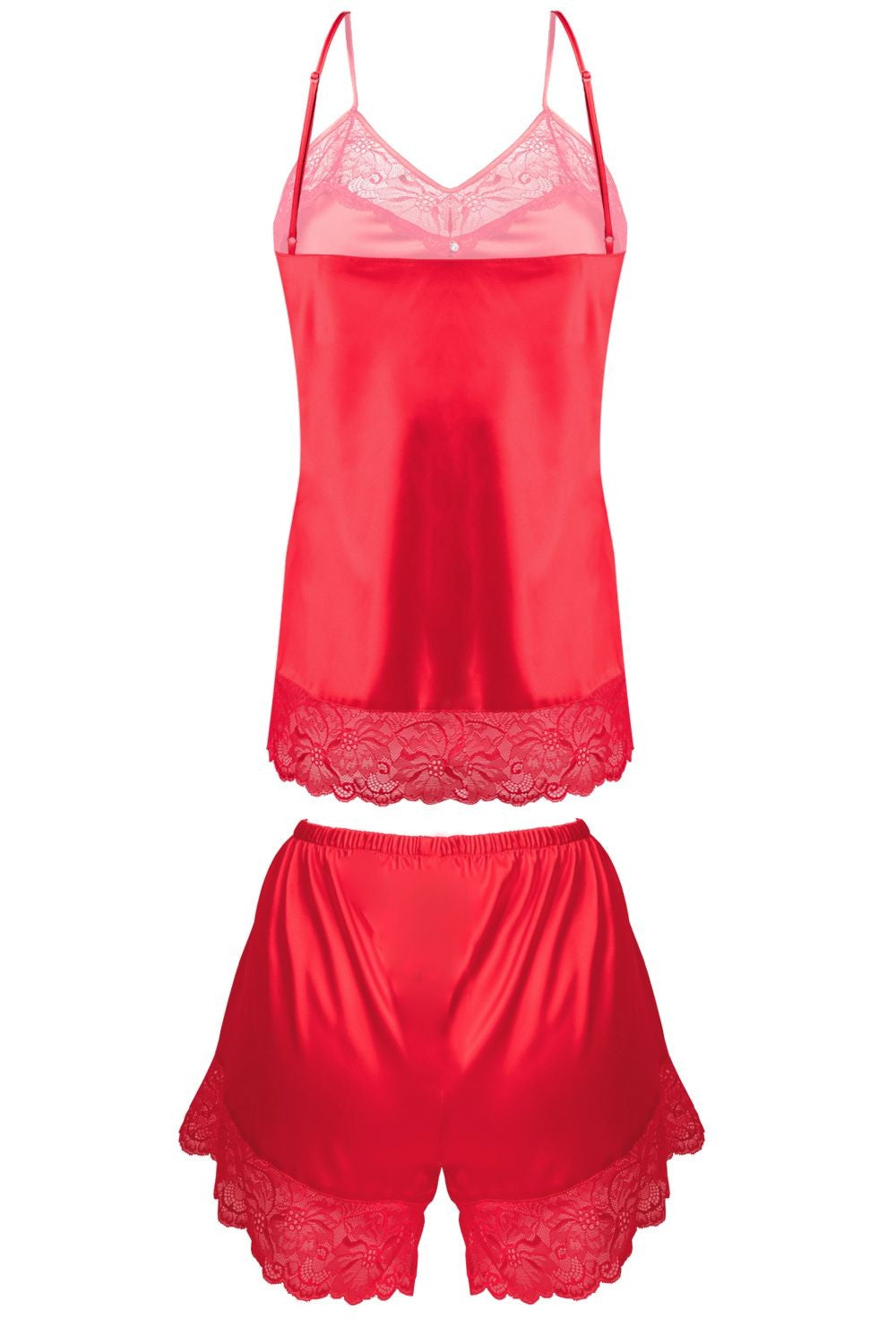 Koszulka i spodenki zdobi koronka, a elegancki diamencik na środku biustu dodaje luksusowego charakteru. Cienkie, regulowane ramiączka pozwalają na idealne dopasowanie. Idealny na romantyczny wieczór, specjalną okazję lub codzienne noszenie.