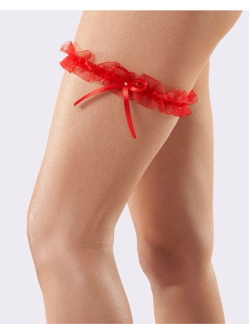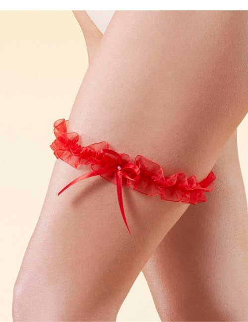 Podwiązkę zdobi urocza kokardka z delikatną perełką, nadająca całości elegancji i romantycznego uroku. Uniwersalny rozmiar zapewnia wygodne dopasowanie. W wersji czerwonej stanowi stylowe uzupełnienie studniówkowej kreacji, natomiast w kolorze niebieskim jest idealnym wyborem na ślub, zgodnie z tradycją „czegoś niebieskiego”.