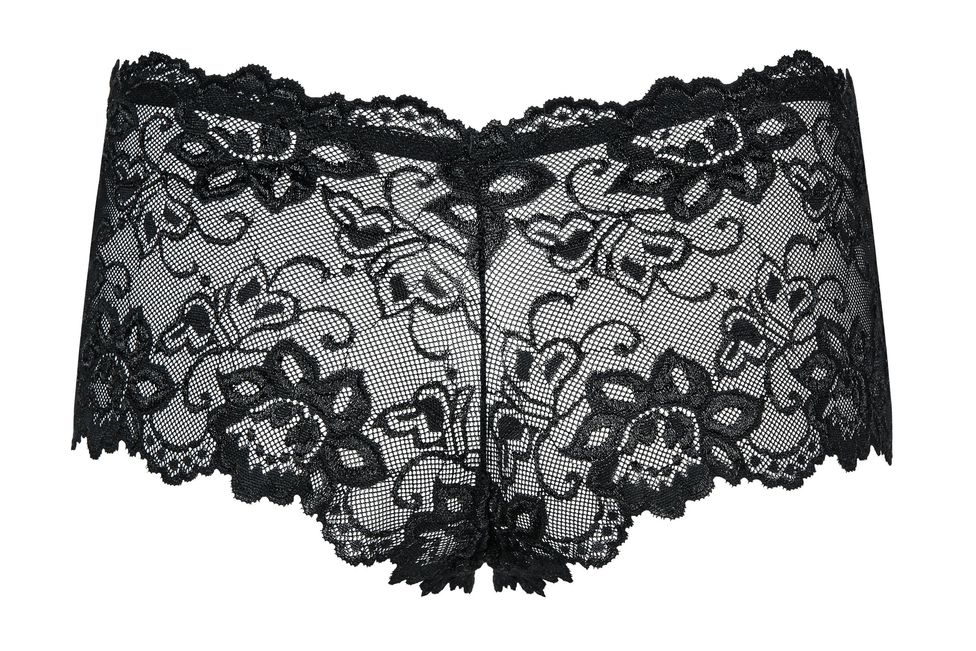 Szorty Idillia to kuszący i zmysłowy dodatek do Twojej garderoby. W całości wykonane z delikatnej, elastycznej koronki, pięknie dopasowują się do sylwetki, podkreślając kobiece kształty.